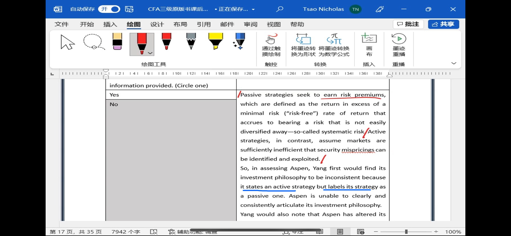 已回答一个语意问题,答案中想表达的是:声称是被动投资(认为市场有效),而实际用是主动投资(利用错误定价获利)。但答案中用的是states an active,翻译过来是声称用主动投资的意思,答案是否写错了?