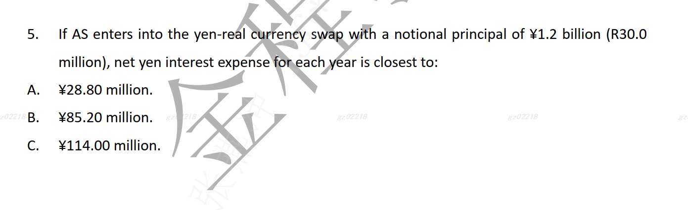 老师,这道题为什么是net interes rate为什么是(9.5-7.1)%呢,9.5%这个load也得还呀?不会通过一个swap就少支付费用呀,没想明白其中逻辑?是不是他除了支付这net 2.4%的yen利息,还得支付12.2%的yeal利息
