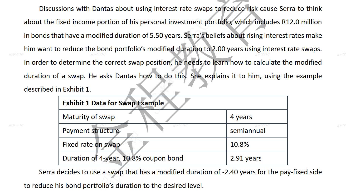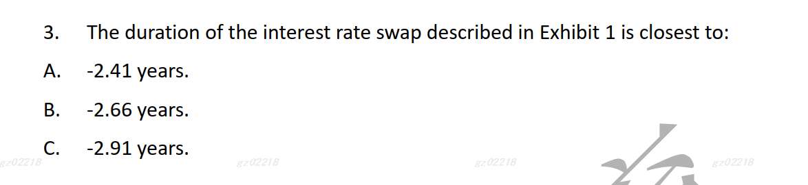 老师,这道题the duration of the interest rate swap为什么就等于0.5/2-2.91呢,帮忙解释下这是哪个知识点,考查哪个公式