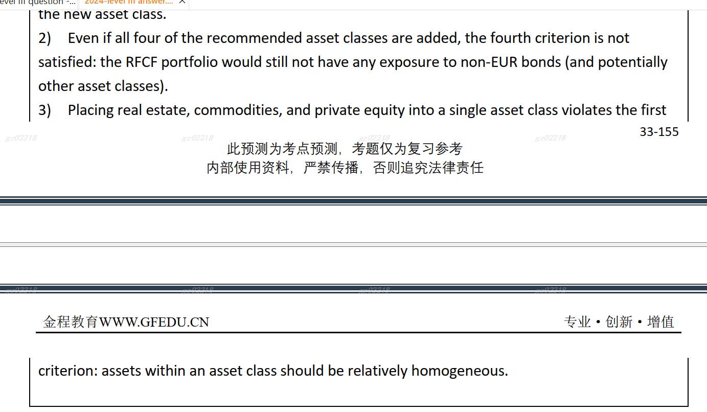 老师,这道题考查asset class的特征要求,答案中说real estate、PE、commodity在一个asset class里不符合homogeneous,他们不都是alternative吗,为什么说不符合homogeneous呢