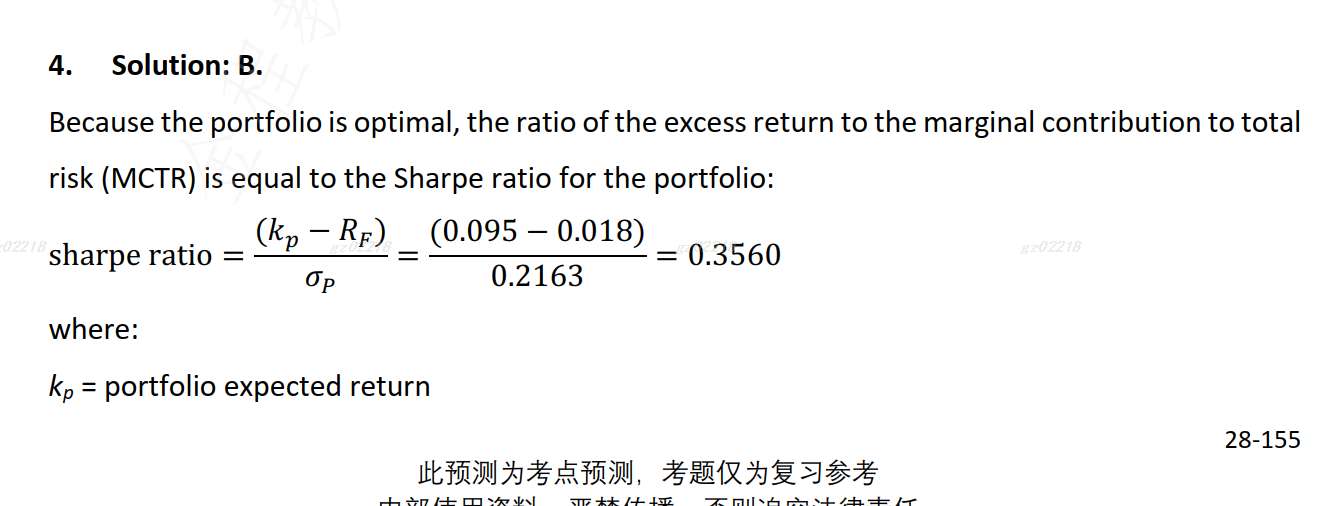 老师,题目哪里可以看出是portfolio是optimal呢,optimal时the excess return to MCTR=SR课上讲到过吗
