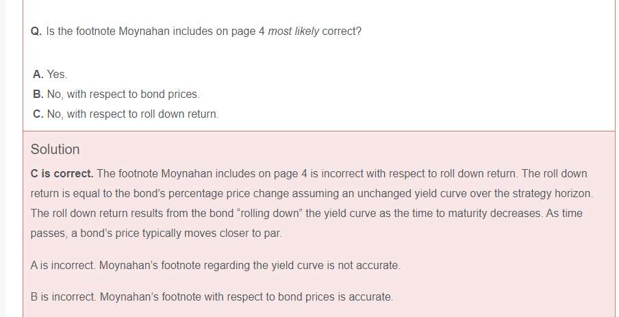 The roll down return demonstrates how the price of a bond typically moves closer to par regardless of yield curve changes over the strategy horizon.”这句话有啥问题