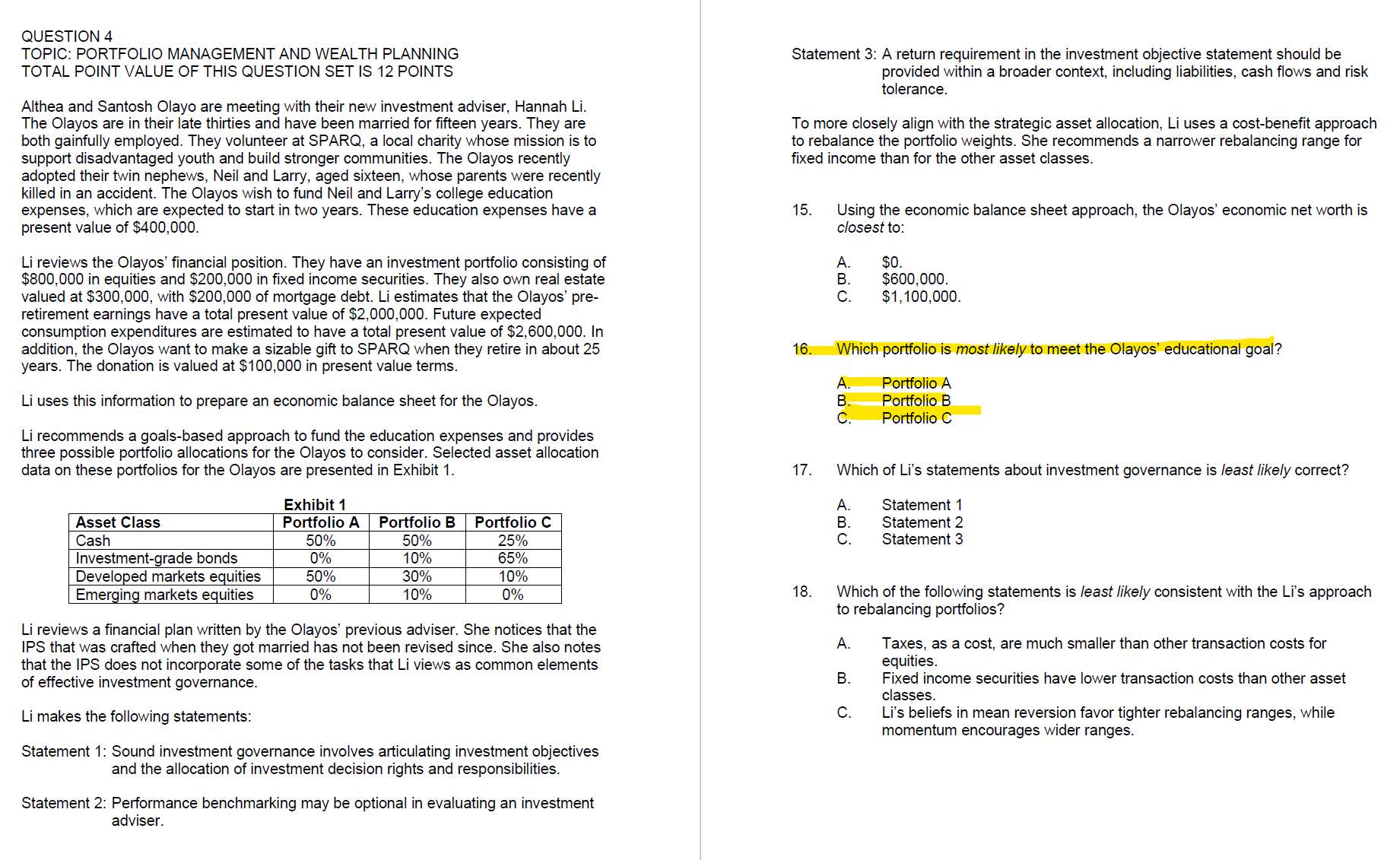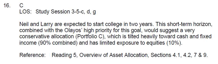 老师,第16题,我觉得B最好啊。因为cash最多,两年后要拿出钱来付学费最不会有流动性问题。但是答案是c,不知道是根据那个知识点来的。能说一下么?谢谢、