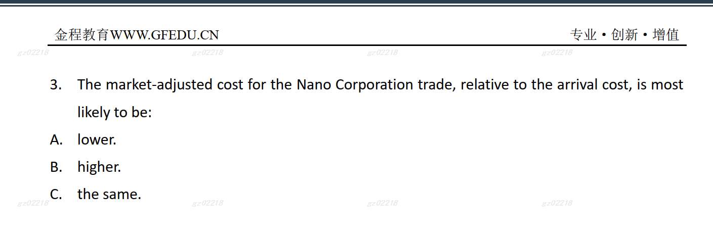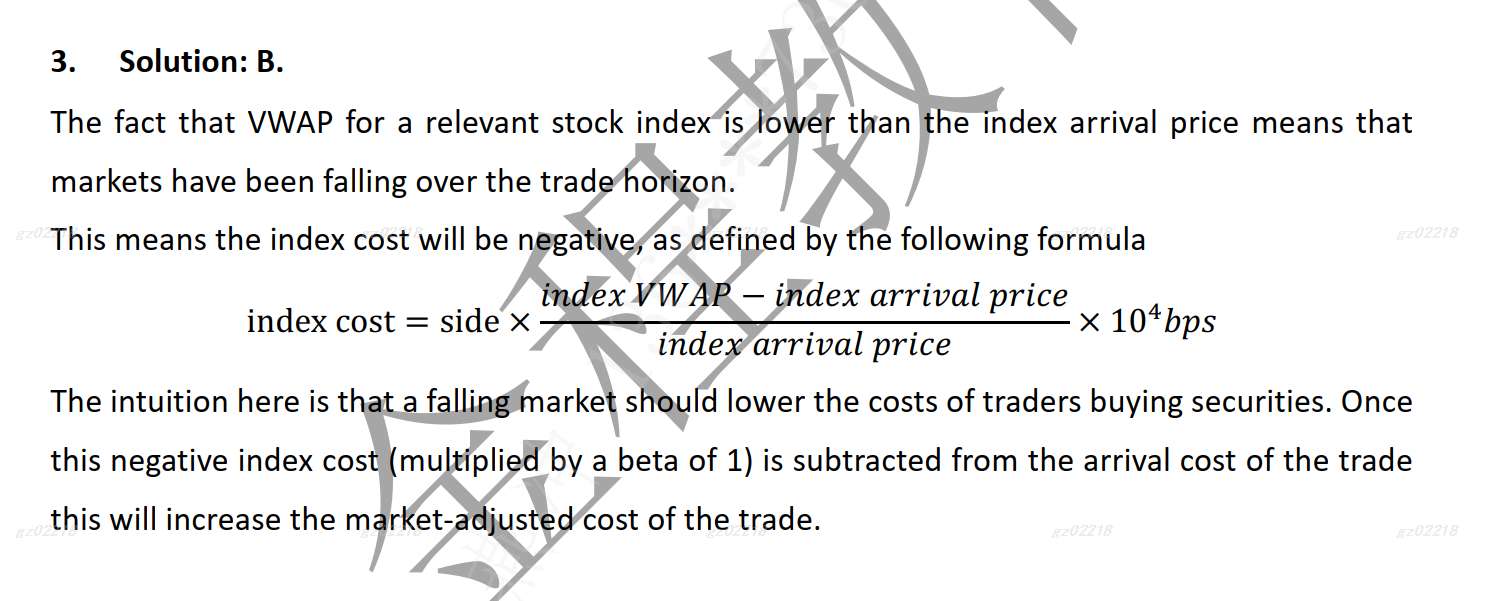 老师,这道题问market adjust cost相对arrival cost升高还是降低,答案中写index cost是为啥,没看懂