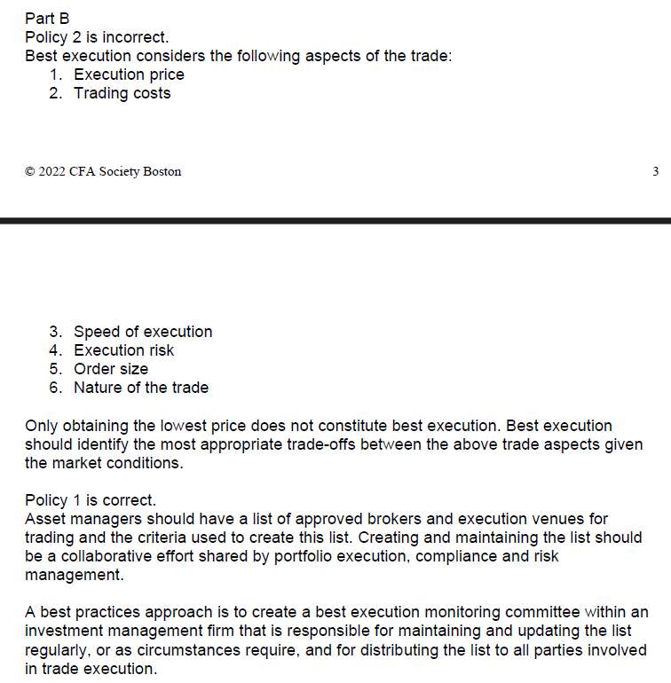 Policy2是不是本身表述有歧义?我理解的是在确保best execution的前提下,选择价格最优的。然后Policy1我在想portfolio execution去审核list会不会有利益冲突?