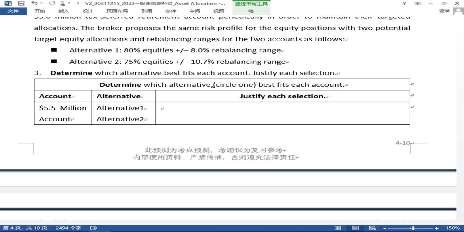 5.5million是税后的,那么它之后的投资就都是税后的?波动率就更小?这什么逻辑?它之前交过税,不代表之后都不需要交税了啊,为什么从这个角度来考虑这个题呢。貌似不对吧。如果回答5.5m应该是放在taxable account,它频繁rebalance会面临capital gain tax,所以给它匹配更宽的range,能得分吗?