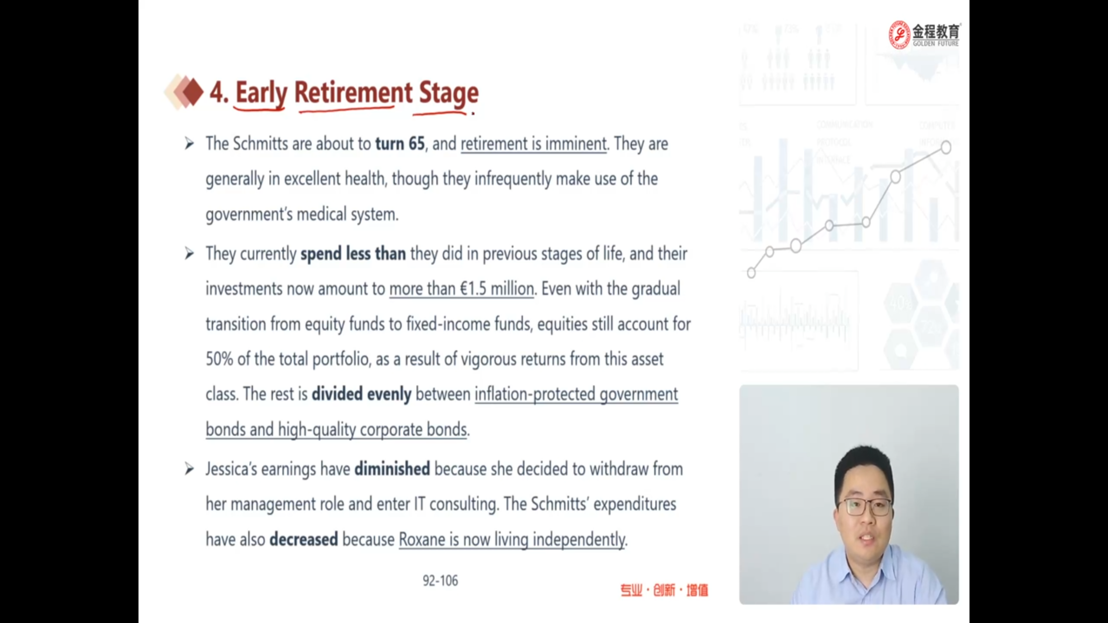 个人ips里early retirement stage指的是退休后前几年的时间,案例里退休前夕应该是pre retirement吧
