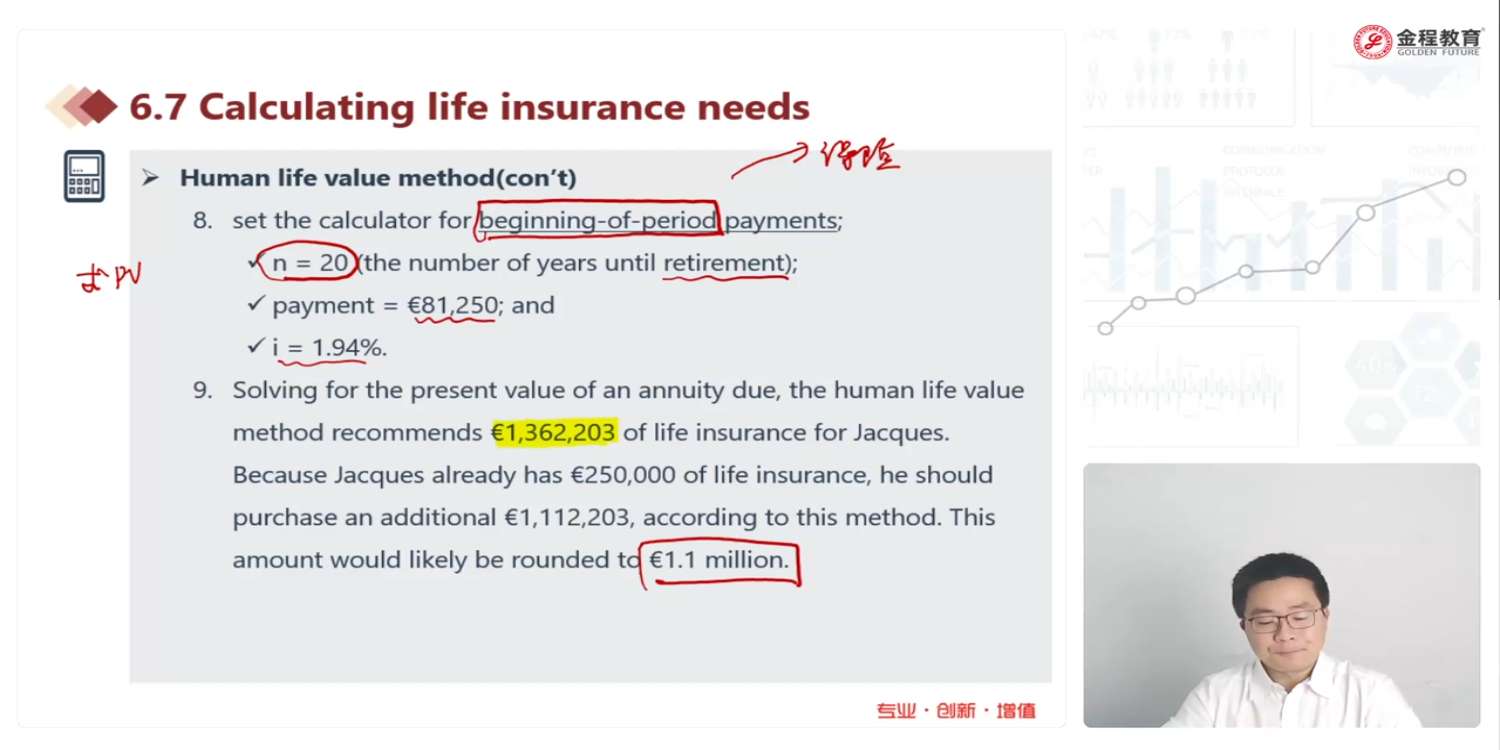 这里不对啊,收入是在期末的,求出的这个需要的钱也是期末的,这个payment并不是保费,为什么用期初BGN模式求?