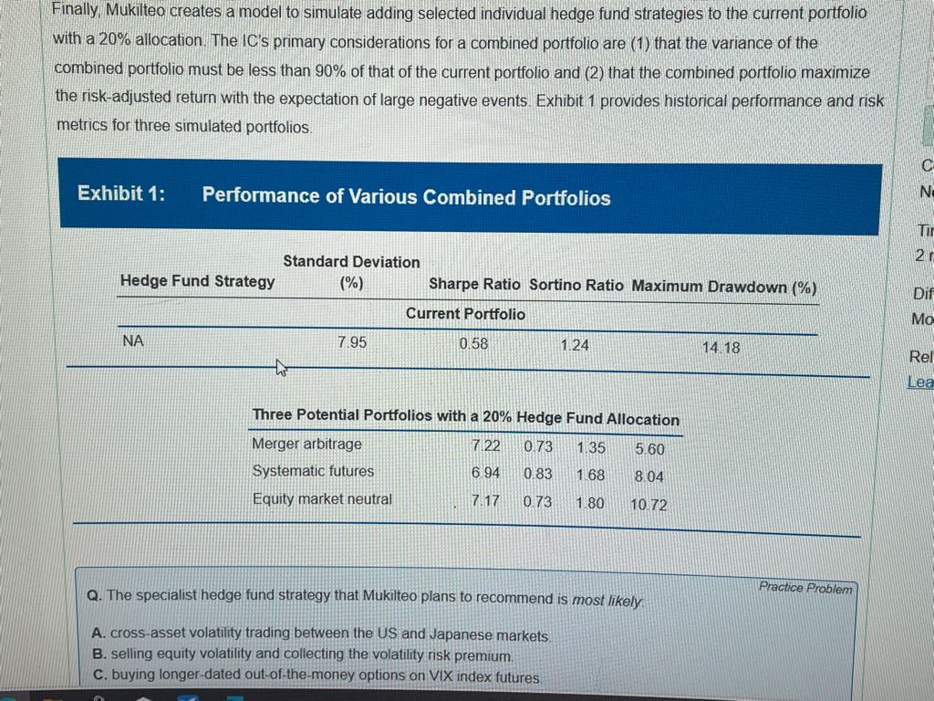老师,第四题的解析里面说currency overlay只对冲外汇风险不加杠杆。但是题目中是对期货的用途,这里期货是保证金交易自带杠杆,是不是也算用了杠杆来hedge FX risk?
