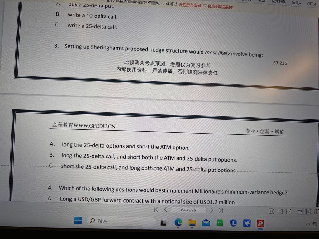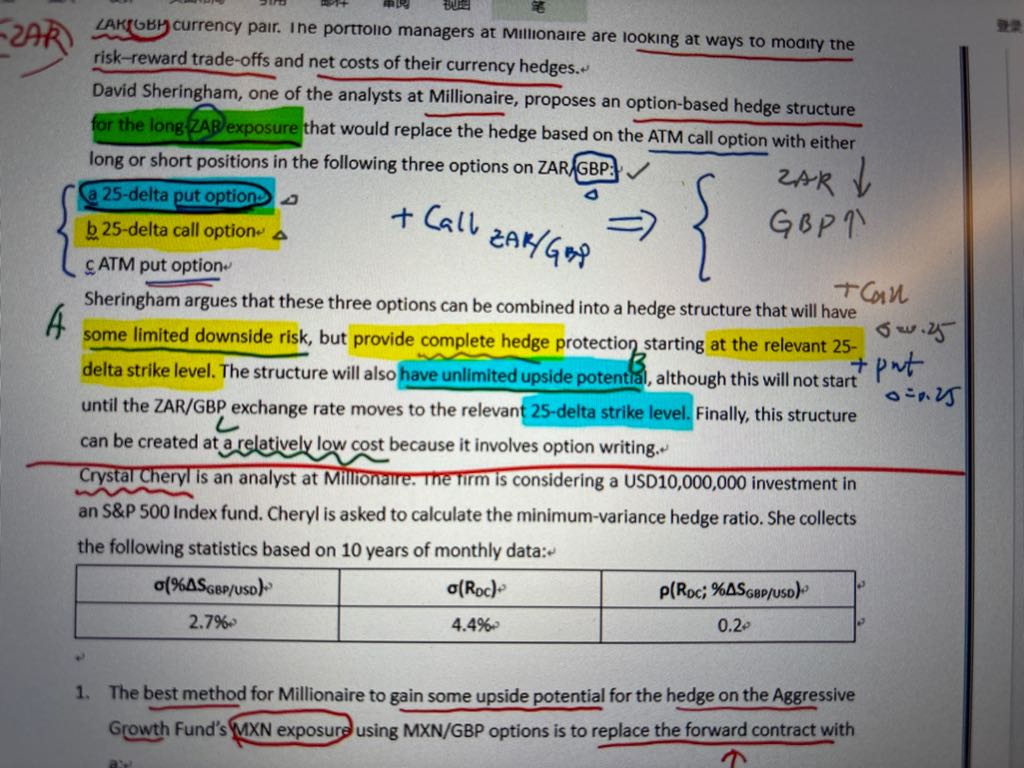 老师,第三题,我思路:持有zar,怕跌,所以short call或者long put。货币对是zar/gbp,所以倒过来🥲