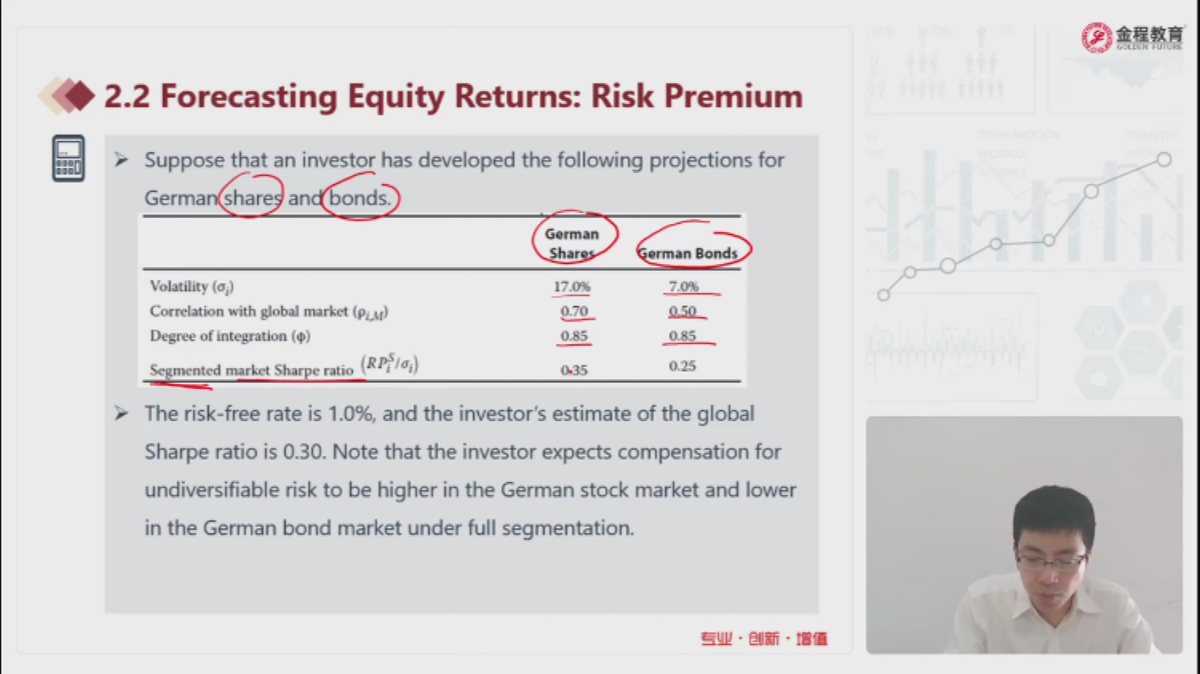 已回答这题题干里面为什么说risk premium higher for German stock markets and lower for German bond markets under full