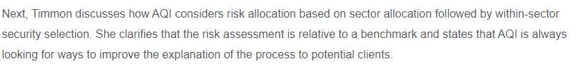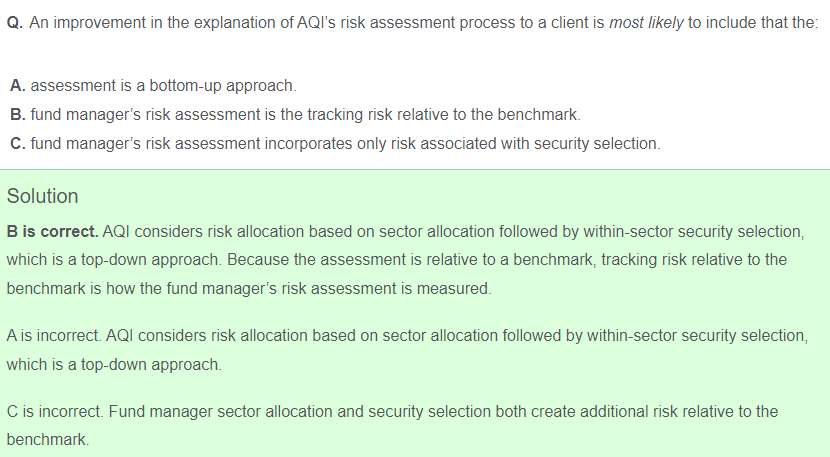 老师,这题问的是哪个工具最能体现IPS, 投资者行为这里为什么是diversified? 最后的tracking risk答案最后一句话想说什么