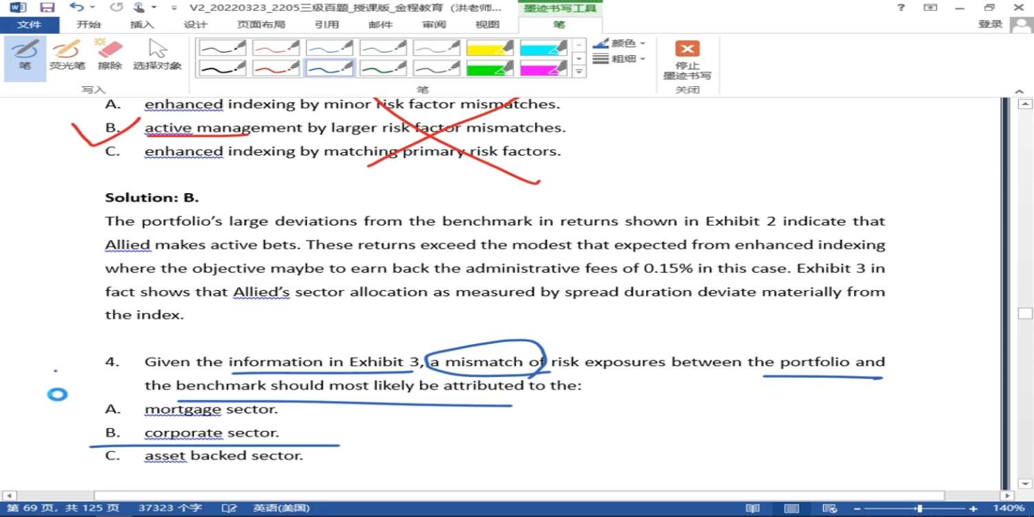 包含CFA三级传统在线课程相关提问答疑;