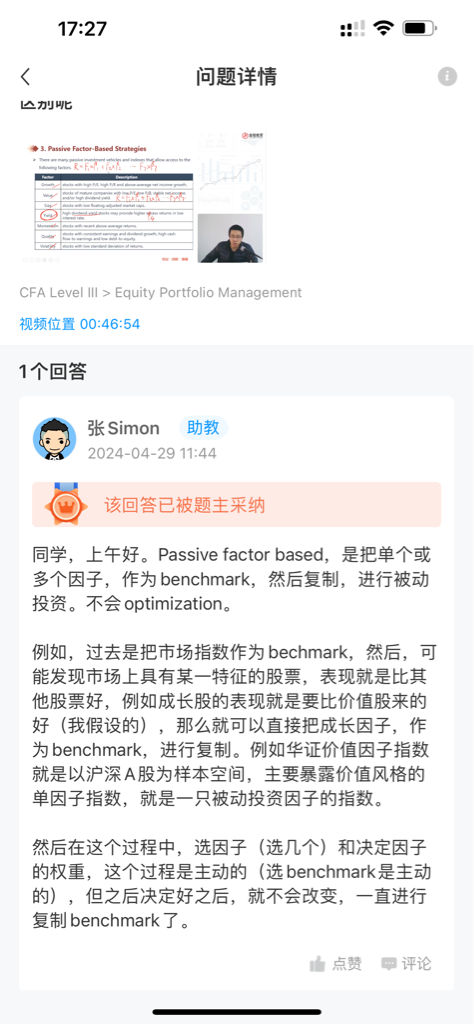 包含CFA三级传统在线课程相关提问答疑;