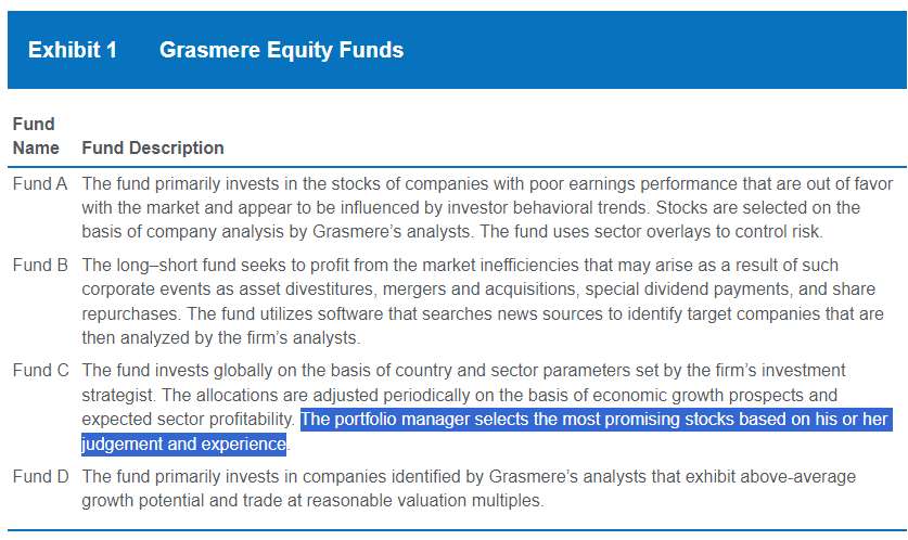 Fund C最后说的选股,不是指顺着前面的宏观经济和盈利分析之后继续选股吗?解析说这里的选股指的是bottom up,但是文中只是说基金经理根据经验选择,并没有说通过什么bottom的指标。很容易让人感觉是top-down的过程。