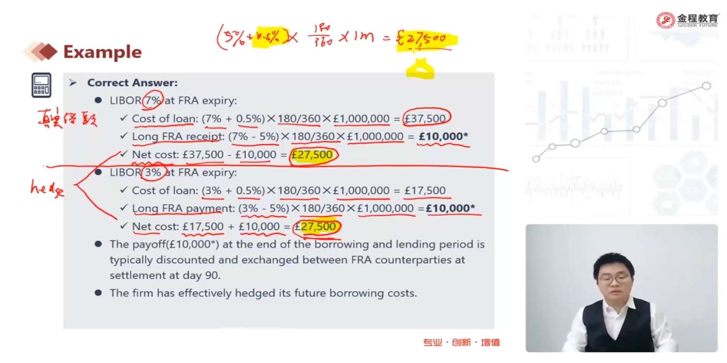 这道题说明如果引入FRA锁定利率,不管利率未来变化,我的成本都是一样的,所以遇到类似题目,只用算一次,直接用锁定利率加BP即可,不用管到期日的利率了,对吧?