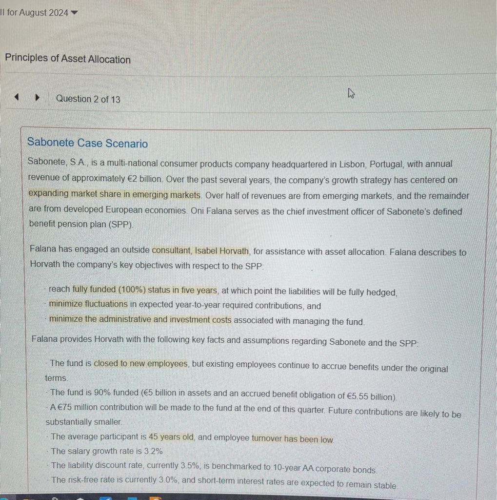 官网题资产配置的这题Sabonete case,第二问帮忙解释一下,谢谢。