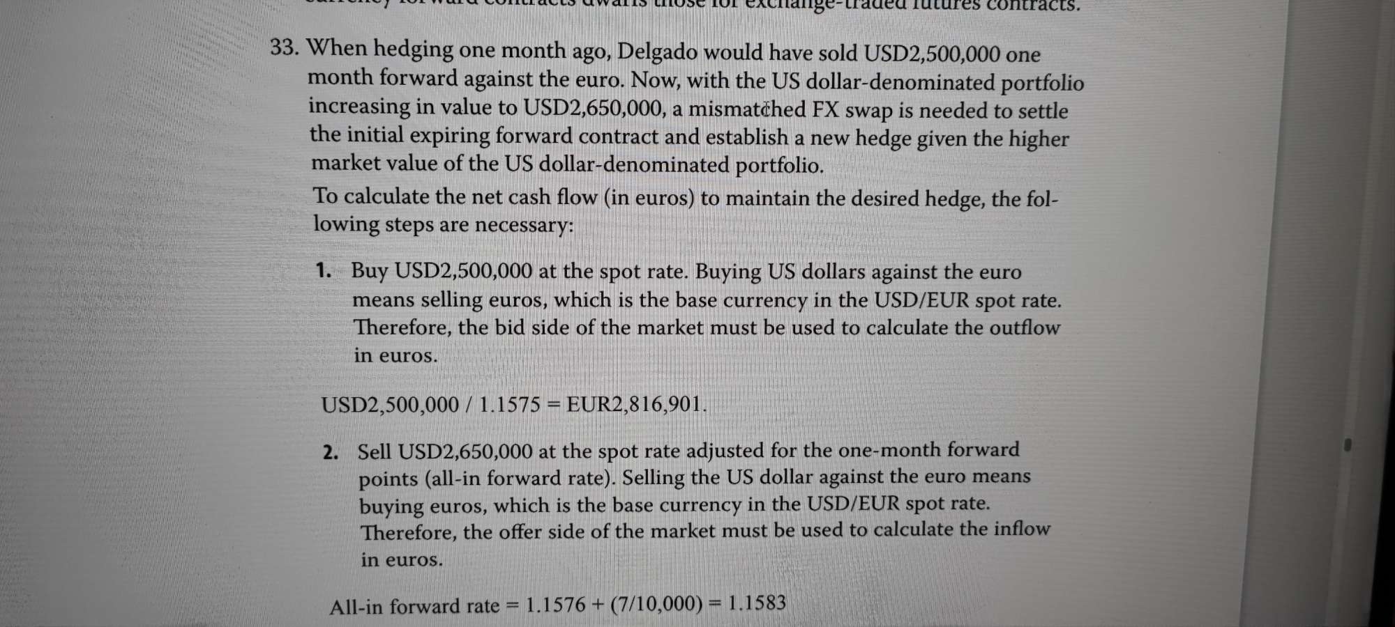 34题是接33题的,33题里还是欧元做Base currency,怎么到了34题就换成美元了?