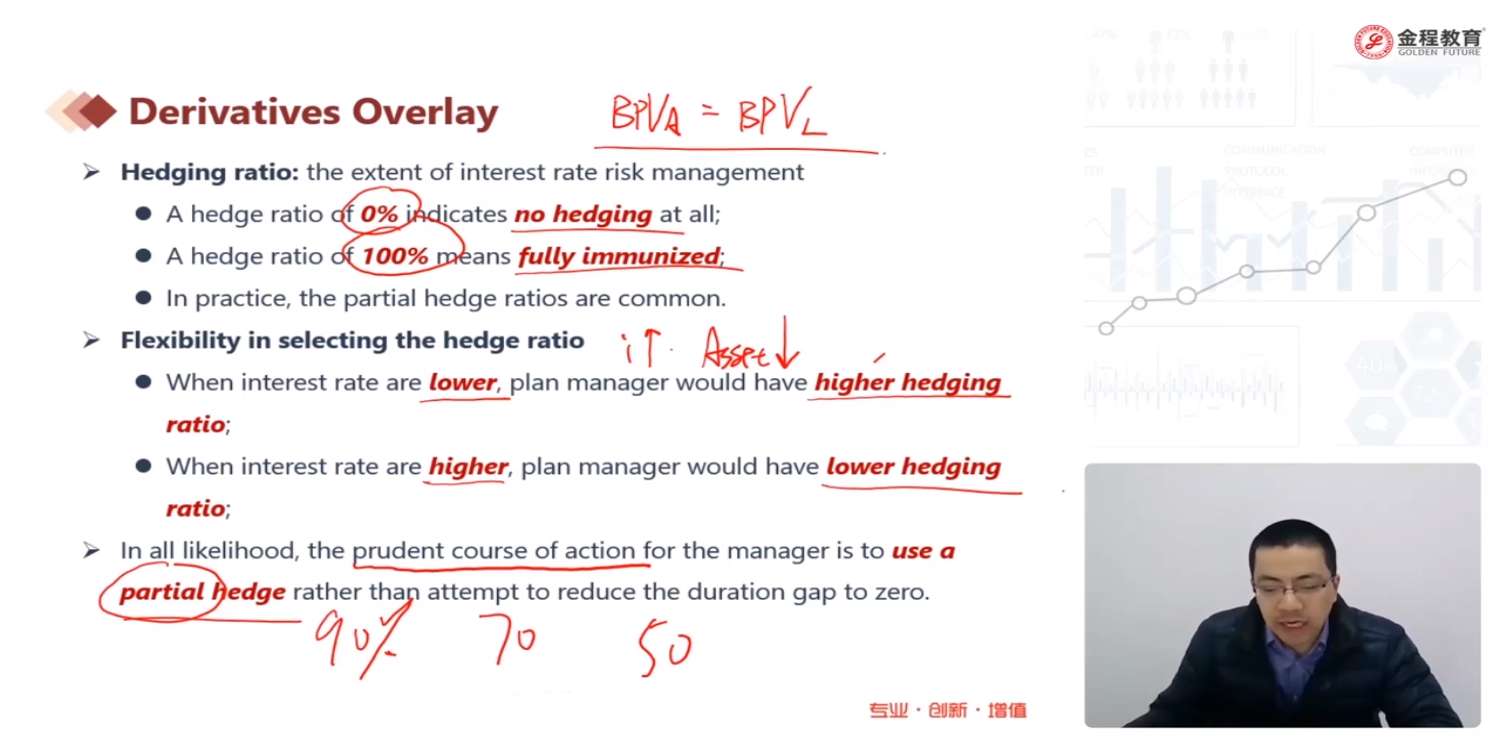 麻烦再讲解一下利率水平对hedge ration的影响。到底以哪个为准?利率影响asset现值的同时不也是会影响liability吗?