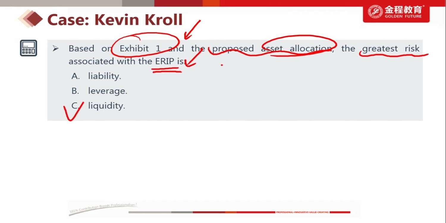 老师您好,这个题可以用Contingent immunization我能理解,因为有surplus,用Contingent immunization是最好的。不能用Cash flow matching答案中说会导致reinvestment risk and forgone returns on cash holdings,这一点我不是很理解,CF matching不是刚刚好能把asset的现金匹配至liability嘛?怎么还会有reinvestment risk的?forgone returns on cash holdings是不是因为surplus的情况下,不需要那么asset就能实现CF matching了,surplus部分的资产就以现金的形式hold住,而非去投资赚取收益,所以会丢失一些return?最后是duration match为啥也可以呢?Wharton的duration of assets比duration of liabilities小很多,duration match的要求之一是asset duration 大于等于 liability duration诶~