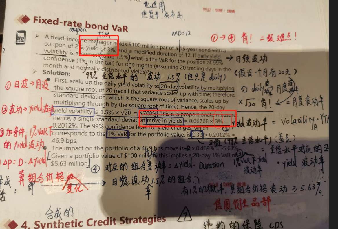 三级 固收(有劳提请Johnny方老师指教) 计算expected excess return,问题是公式中spread0和POD*LGD都应该乘以 holding period吧,这里答案里,将 instantaneous(瞬时)只理解为了 spread0的holding period=0,而POD*LGD对应的holding period却没有。两个问题: 1、instantaneous难道不是 spread0和POD*LGD 对应的两个holding period同步的吗? 2、instantaneous怎么判断,其他也有题目,即便出现瞬时,holding period依然是1,这类题目有没有归纳总结?