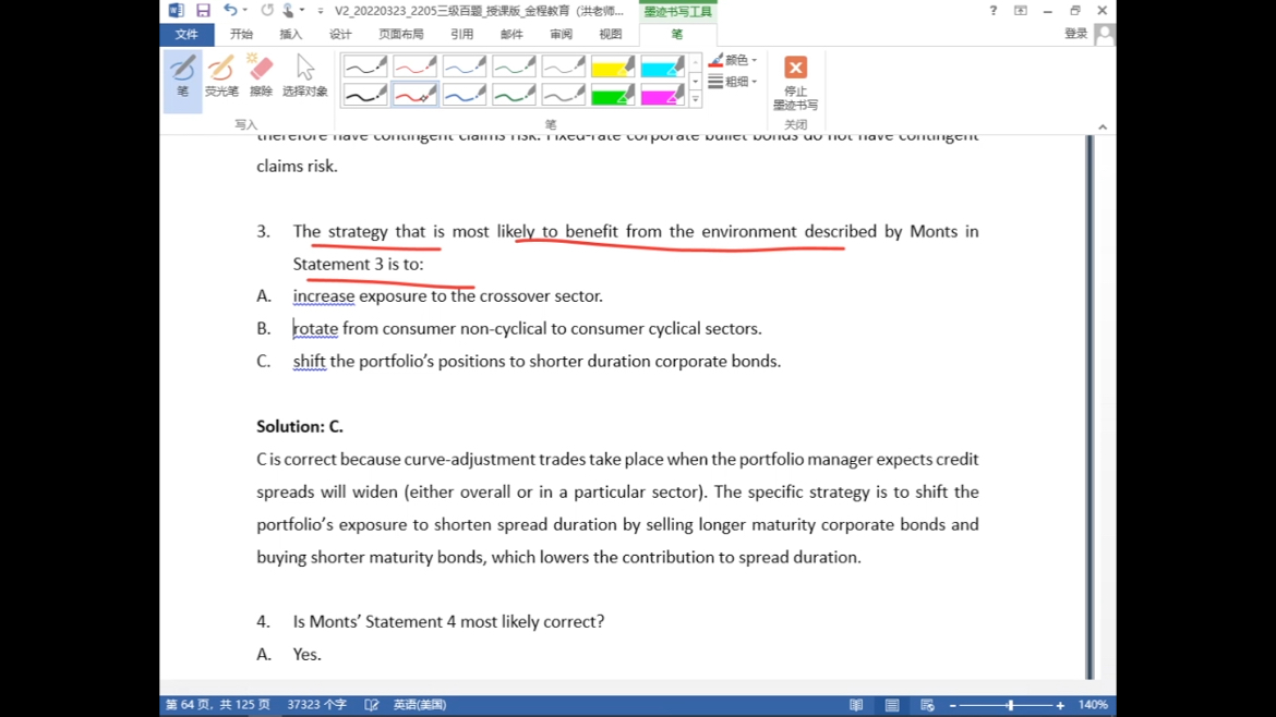 查看试题 已回答第3题,portfolio的spread duration只要有一点和benchmark不一样就叫active吗?是有一项比如corporate不一样还是加总的spread duration不一样就算active?