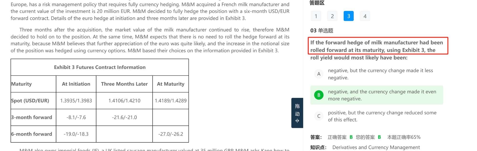 已解决老师好,关于这道题的问题,其实红框部分只是说到期之后平仓再开仓继续下去的意思对吧? 但不管是否继续roll下去,都不会影响6个月后到期平仓的事实,所以有没有红框的前提条件,根据题目中汇率的变化,本题的答案都一样