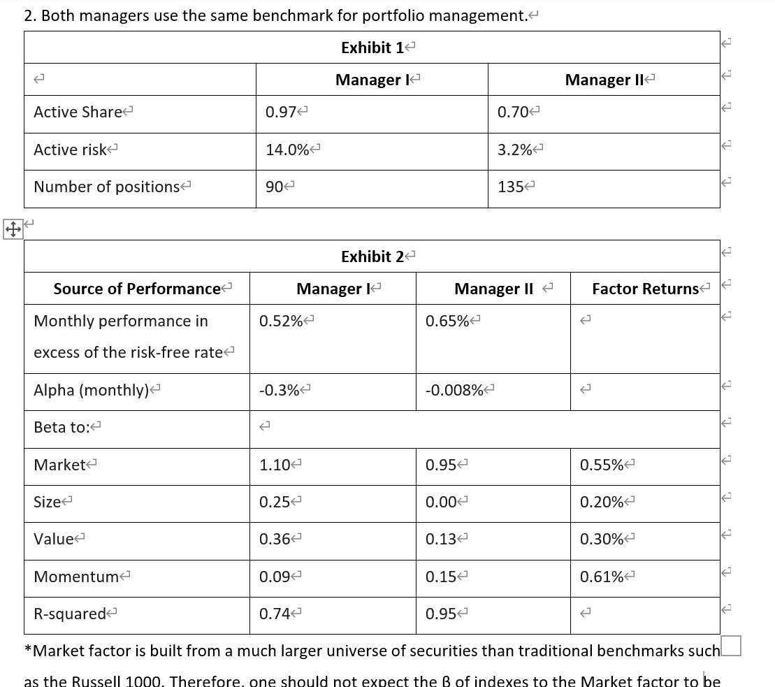老师,这道写作题问identify one driver of return that most likely contributed negatively to each Manager’s performance. 以及 compare the performance of Manager I with that of Manager II based on the portion of return: explained by rewarded factors。答案实在没看太懂,能不能帮忙指导一下,这个表格到底应该怎么看,那些beta数值和factor returns应该如何理解。谢谢!