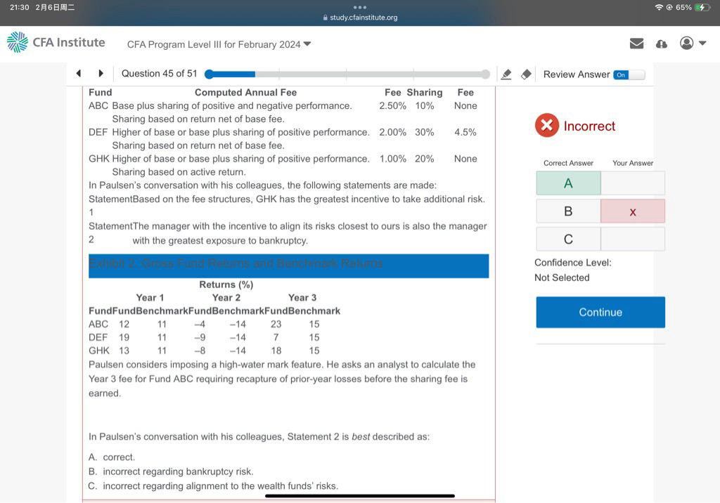 包含CFA三级传统在线课程相关提问答疑;