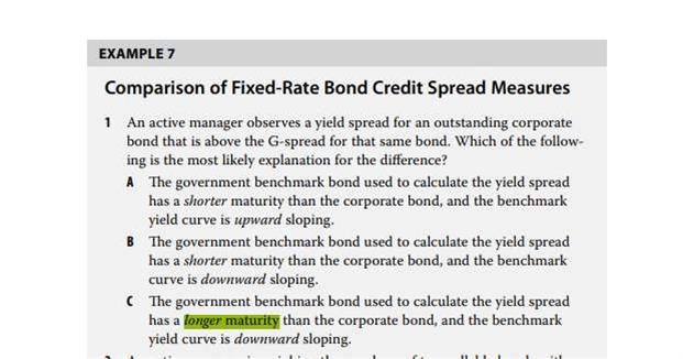 老师,本题我认为C选项也是对的,因为是downward sloping, 所以yield是越来越低的,那么如果用一个Longer maturity benchmark 计算yield spread 确实应该是更大的啊。