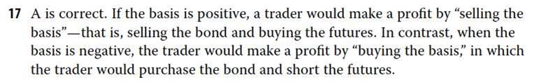 老师,请问R9课后题第17,答案这里说selling the basis的做法是selling the bond and buying the futures. 不应该是sell the futures才对吗?