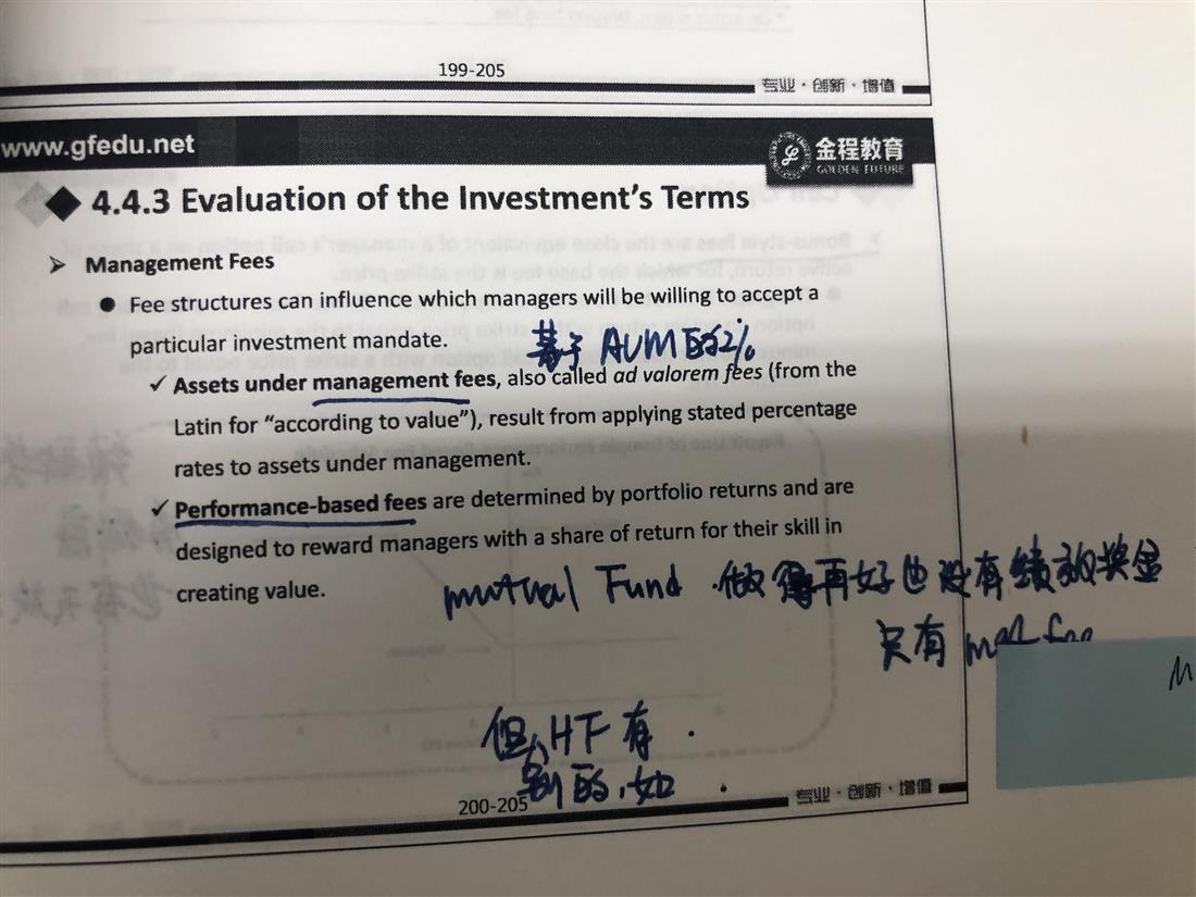 老师您好, mutual fund 没有绩效奖金吗?我觉得mutual fund 的基金经理也会allocation and selection 上面也很靠他们的能力, 为什么他们没有绩效奖金呢?还有就是计算绩效奖金的时候, 是computed fee直接乘以AUM吗? 就是绩效奖金是绩效费率乘以AUM吗?谢谢