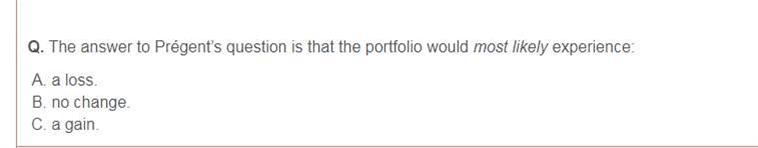 老师,这道题我选的no change。买option增加convexity,卖长期债感觉减少了convexity,在stable的场合下,sell convexity才能获得gain,反之是loss,但这题目不明确阿。。。