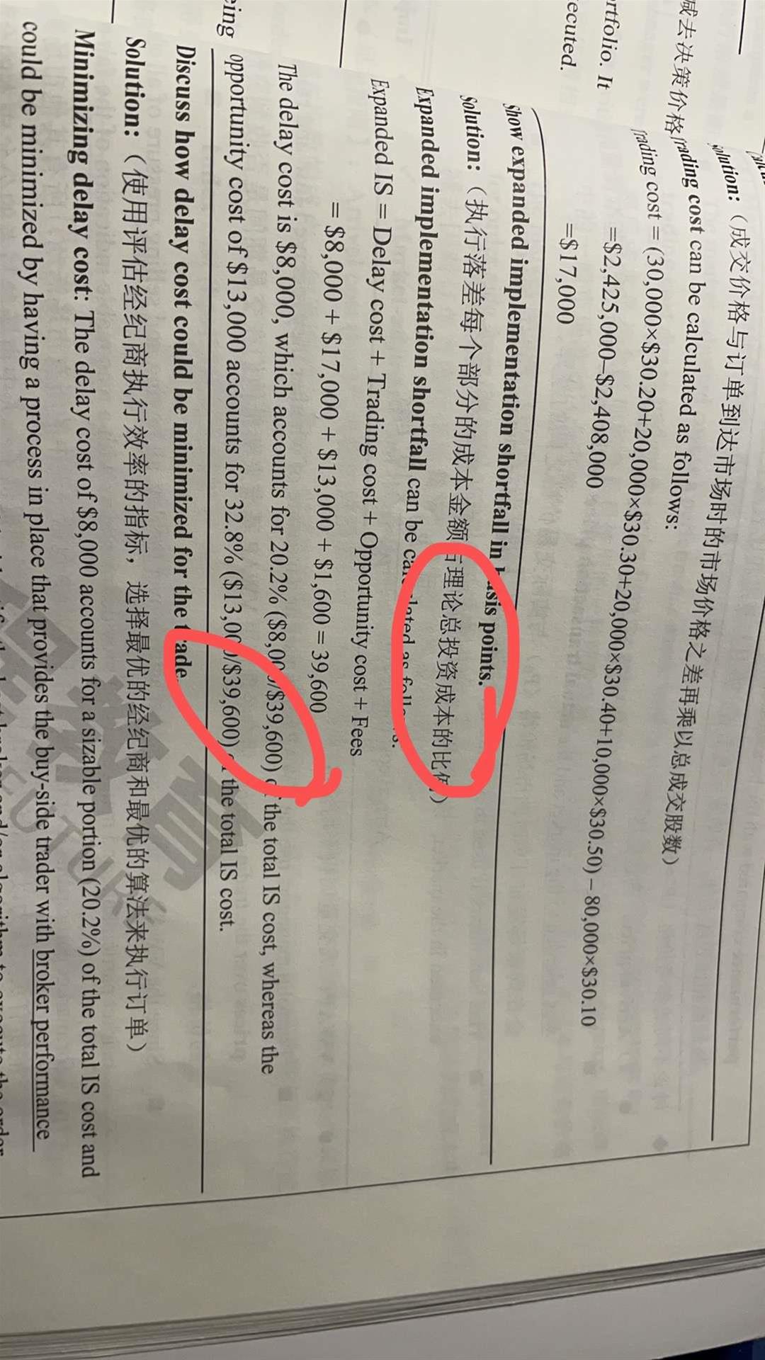 老师好,冲刺笔记关于执行落差 in basis points 这里,写的是每个部分的成本占理论总成本的比例,而 理论总成本不应该是10000股*30=300000吗?为什么例题里面用的39600?
