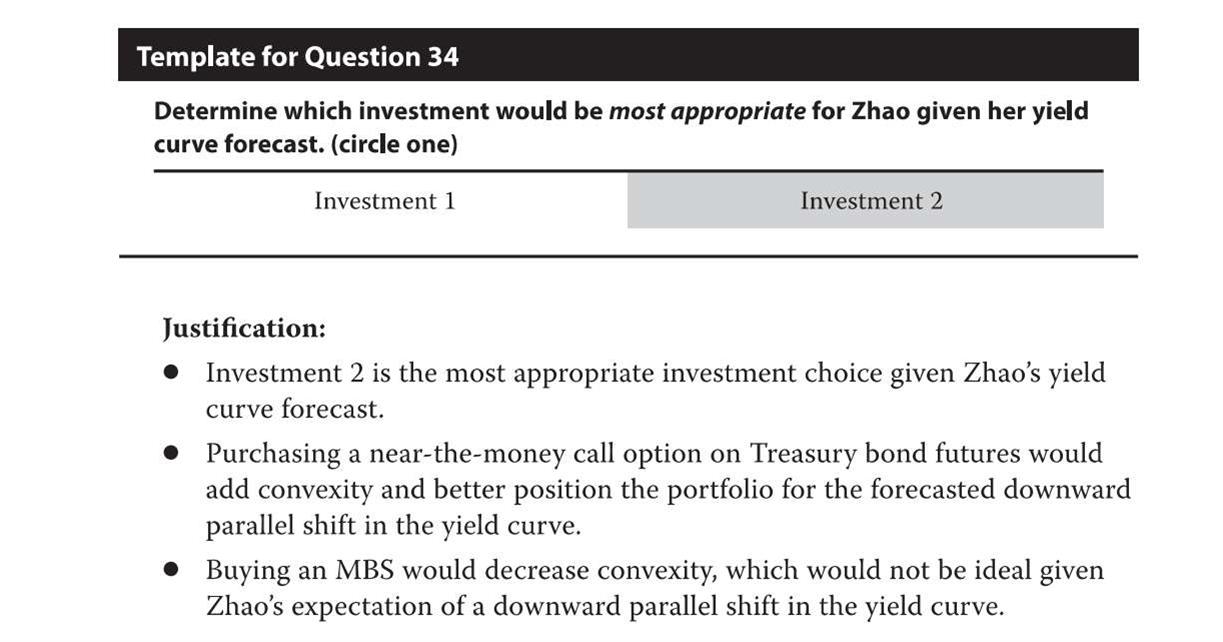 已回答老师好,原版书课后题R20 34题,为什么选择Invetment 2,解答说因为买call option增加了convexity,但是讲课中说了call option和MBS都一样,会降低convexity啊,本题用MBS和call option有啥区别呢,麻烦解释下这道题,谢谢。