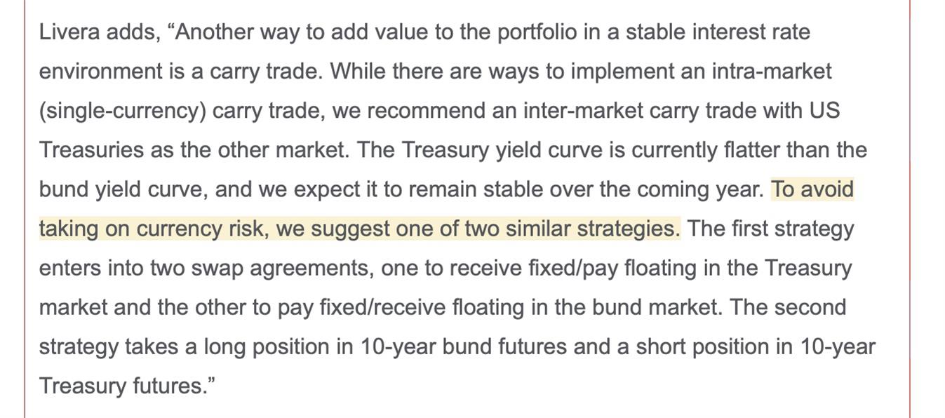 intra market carry trade里,应该在steeper curve上pay short term,receive long term;在flatter curve上反过来,【这个我懂】。【【但我不懂】】这个short term/long term和floating/fixed的对应关系?是short term波动更大所以把它叫做floating?另外,如图的future如何能reduce currency risk?不理解这个原理