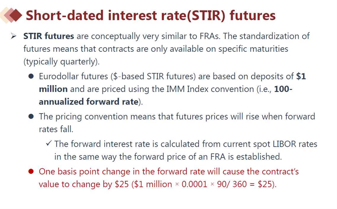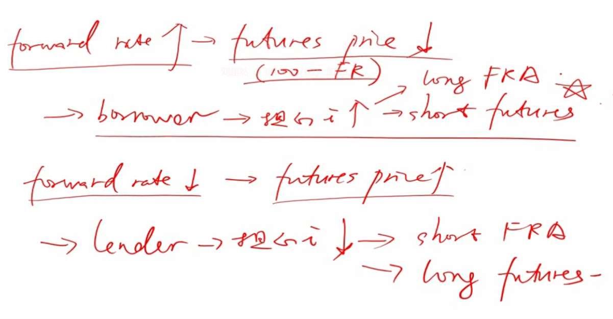 你好,这块儿有点儿confuse. 首先,forward rate上升,future价格下降。我是Borrower的话,我害怕利率升高,如果现在forward rate也上升,市场利率也上升,我为什么还要花钱买一个forward? 其次,如果上面那个成立,那我为什么要short future, 我直接买forward不就锁定利率了?最后,为啥short future等同于buy forward? future只是报价跟forward有关系不是吗?