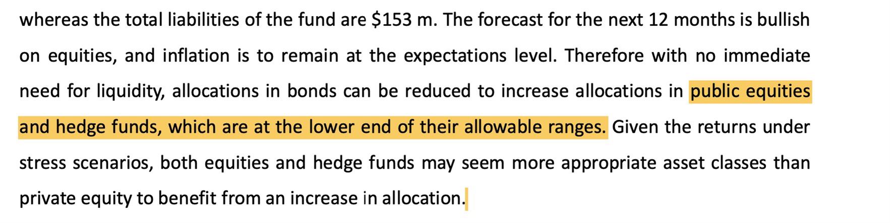 case4 Q3 无法理解答案的逻辑,按照原题给的表格,最快要掉出range的是private equity,而且预期收益-8%,在不做计算粗略判断的情况下,肯定是增加PE的持仓,免得它掉出range,为什么不选它?答案完全不合理!