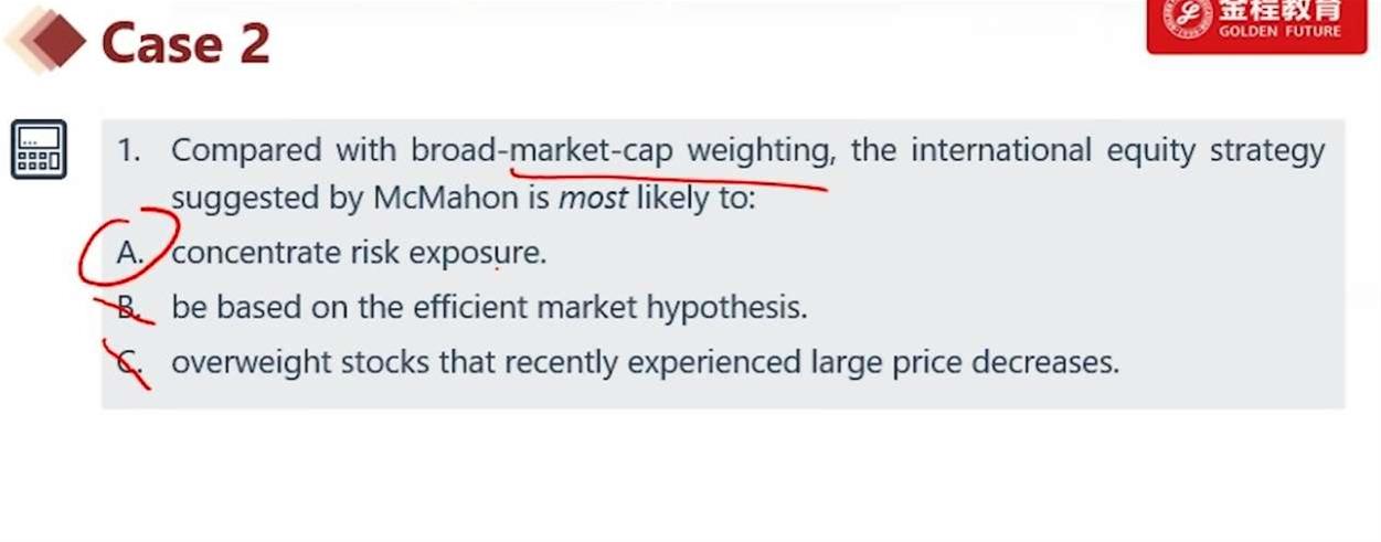 你好,reading23课后第9题的C选项,他建议的策略就是momentum,虽然是factor based,但是最终也是需要去买相应的股票,而不是解答中的因为他是factor base所以错。它是错在overweight近期跌的股票,如果他要是overweight近期经历过涨的股票,那么我认为就是对的,符合momentum的过去涨未来涨的逻辑?