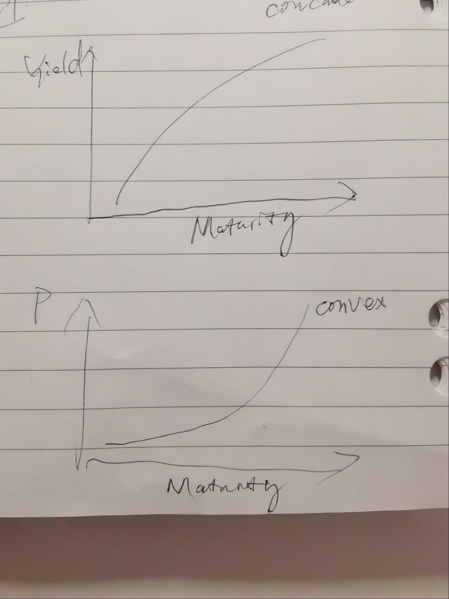 bond的yield的图是concave的吧?bond price的图是convex的?所以long 短端和长端的bond 也就是long他们的price 就是long barbell short bullet 增加convexity 这句话对吗?