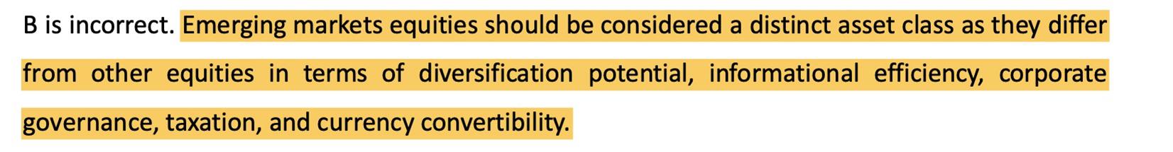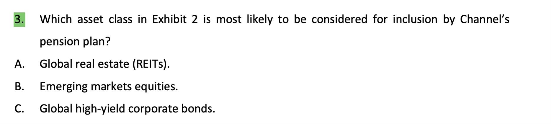 已回答case3 Q3 为什么这里不能选emerging market equity?答案说有risk overlapping但是明明前一题答案才说的emerging equity可以独立于global equity,这不是自相矛盾吗?另外,global 高利率公司bond和目前投资的domestic bond不可以分为不同的asset class,是因为他们都覆盖了corporate bond吗?如果改成“foreign high yield corporate bond是否可以?