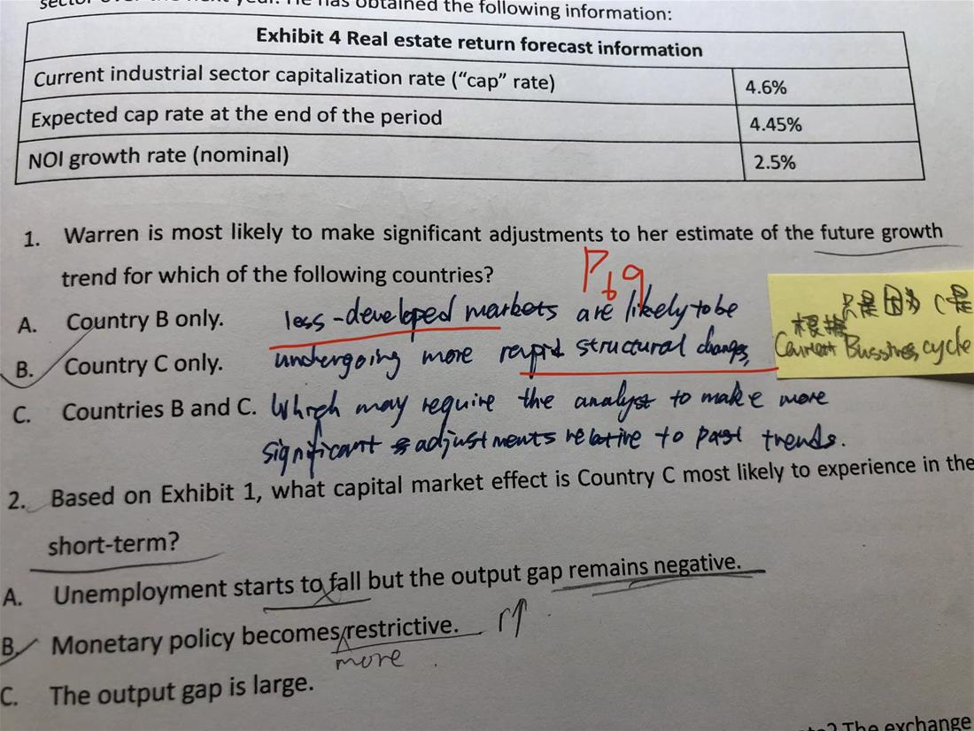 老师您好,这道题的答案只是从less-developed 和developed market出发, 我想问一下, 不考虑countryC 的business cycle吗?我是从business cycle考虑的, 所以选的是countryC。 谢谢
