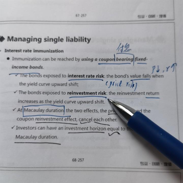 这是讲义中的一段话。这句话对不对?债券会暴露于在投资风险之中。但是再投资风险,我理解是在利率下降的时候才会有。讲义中是说收益率增加也就是收益率曲线向上移动的时候。债券会暴露于在投资风险之中。这样的说法是有问题的吧?如果说是收益率曲线向上行。债券只会暴露于利率风险之中。