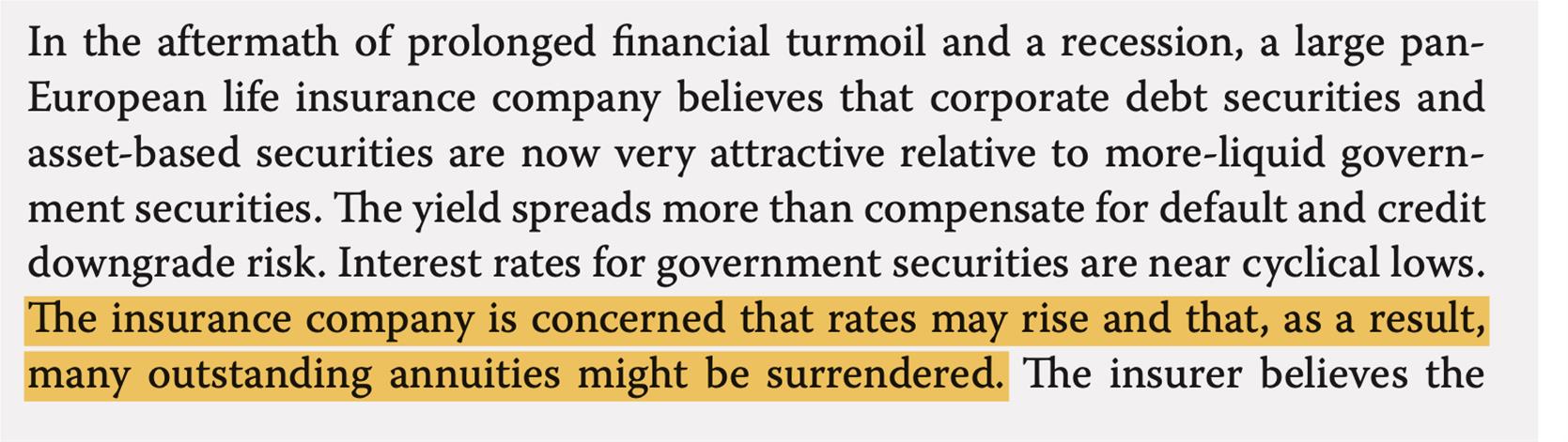 interest rate升高会导致annuity 被surrender,是因为annuity持有者认为annuity(可以当作bond)价值下降,所以surrender了,之后再去市场找收益更高/更有价值的标的是吗?那这里其实和putable bond 有点像吧?
