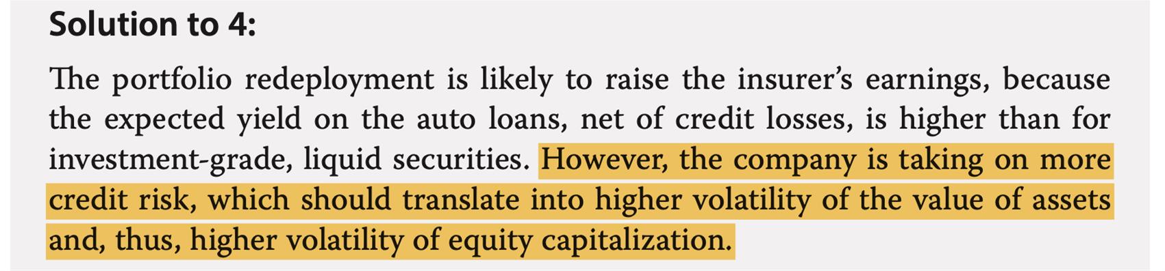 P103 Mini case B 对于第四问,我觉得除了说overall risk【很可能】升高因为信用风险增大,是不是还可以补充一句,如果该投资与组合的其他部分相关性较低,恰好能起到分散作用,那么overall volatility【也有可能】降低。