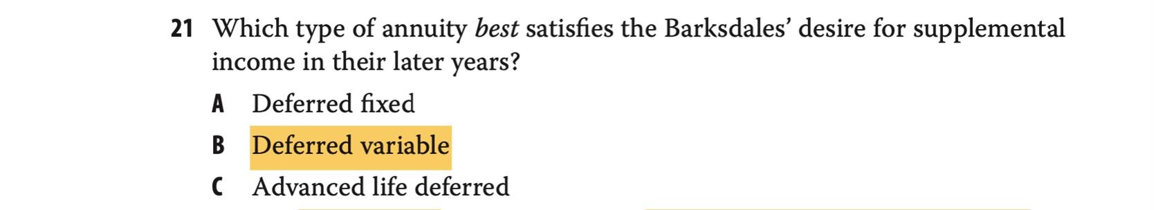 P484 Q21 为什么不选deferred variable呢?deferred annuity不也可以推迟到一定时点再领取吗?这个和advanced life deferred annuity有什么区别呢