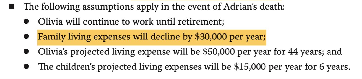 P483 Q17 的计算里原文有这个条件,family living expense每年会减少30000没用上?应该也要在capital need里面减少吧,用PMT=30000,I/Y=2.42,FV=0,N=95000/30000=3.17 求出PV,然后在life insurance shortfall里扣除,也就是说最终结果应该要比331267小。