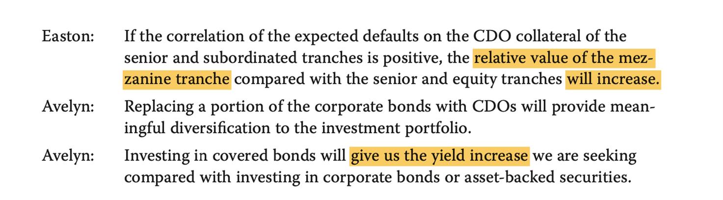 P314 Q15 问题1.为什么senior&subordinate的correlation变大,mezzanine的relative value变大?问题2. CDO的主要成分都是公司债,所以不会产生分散化作用?问题3.投资covered bond因为相当于买了保险,所以其作用最主要不是yield enhancement,而是security,是吗?