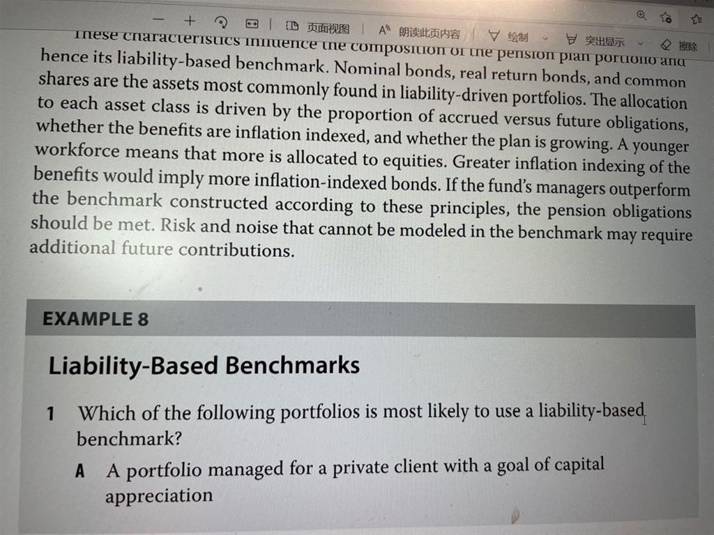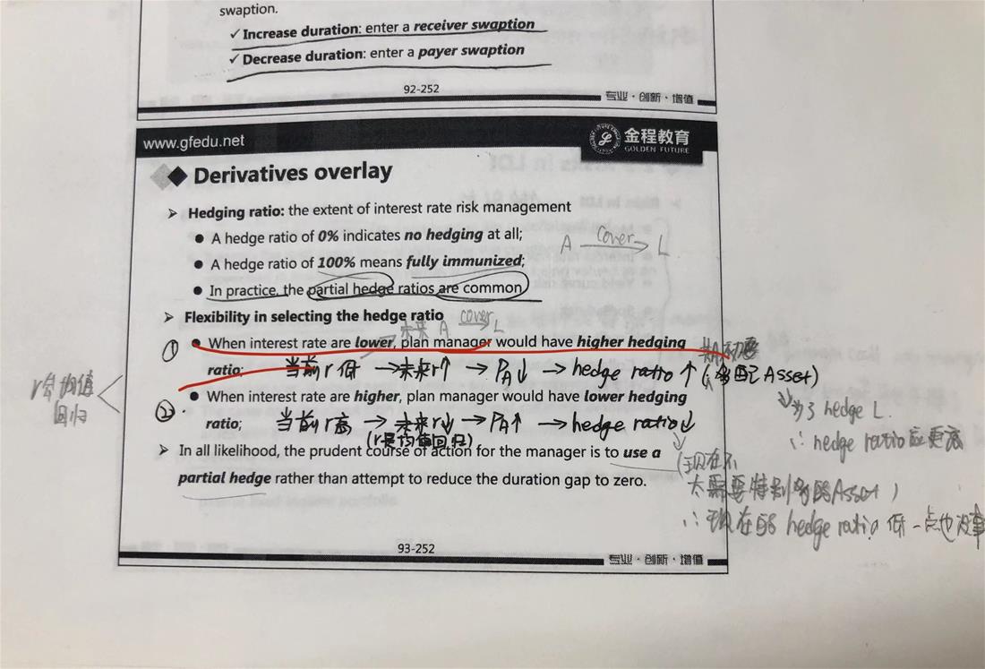 老师您好, 这里我如果按照liability理解, 结果正好就相反了。 现在的R低, 未来的R上升,那么PV of liability 就变低了, 那么就不需要太多的assets, 不就是lower hedging ratio了吗?谢谢