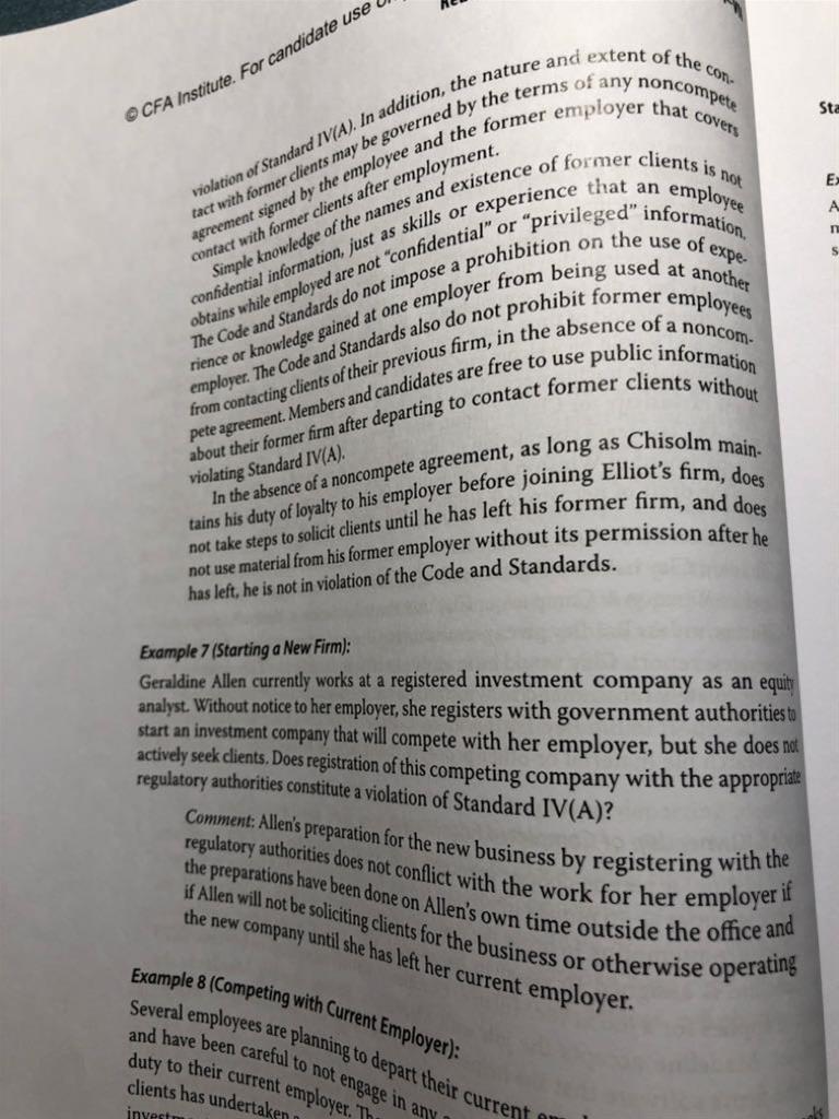 老师,课本里Loyalty to employer 的Example 7,A在职期间开了新公司且与现在的雇主是Compete的,这个不违规吗?还有一点是他开了投资公司也没有notice雇主,这一点也不违规?